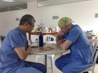 Orthopedic surgeon Dr. Paul Leung and Orthopedic resident Dr. Benjamin Herman playing a game of chess between surgeries.