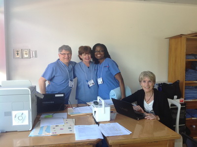 Mission Control: Tracking patient information, surgeries, ordering supplies. These guys make it all happen and keep everyone organized. From left, Jim Raso (IT), Aline Young (Administration) and Sandra Getuba (lay person).