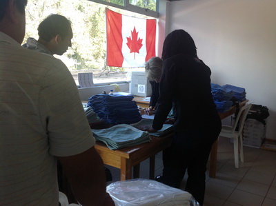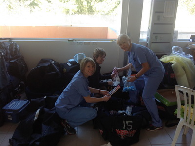 Every morning the team has do an inventory of the laundry. Scrubs, wrappers and linen are laundered every night by the hospital staff and returned to the CAMTA team first thing in the morning.
