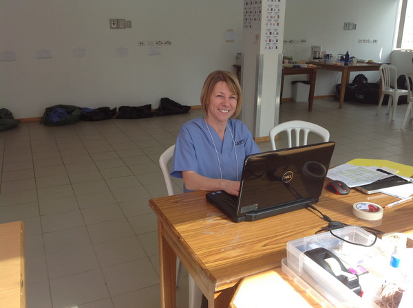 Sandra Henkel is busy on the laptop updating the CAMTA blog with the going ons of the mission.