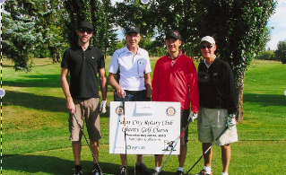 Golfers enjoyed a delicious breakfast before heading out for a sunny day of golf. Steak dinner and prizes followed, with Dr. Marc Moreau accepting Saint City Rotary's generous donation at the end of the evening.