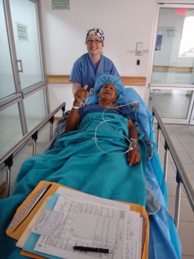 | Julio gives a “thumbs up” as Recovery Room Nurse Mairi Gordon wheels him back to Recovery |