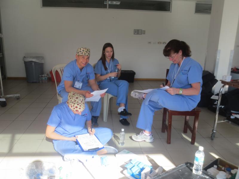 The condition and expiry dates of the medication and medical supplies that have traveled with the team as well as the supplies left behind from the 2014 Mission are checked and counted to ensure that it will accommodate the scheduled procedures for the week.