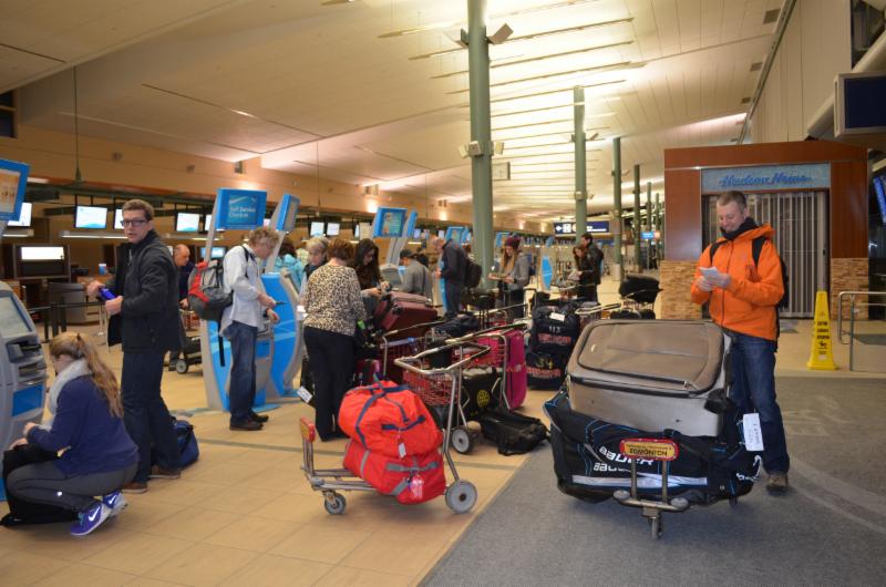 The 2015 CAMTA team assembles at the Edmonton International Airport in the early hours of February 20.