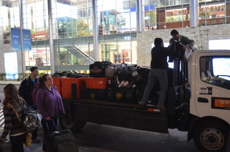 As the team arrives in Quito, Matthew Moreau ensures that all bags have arrived as expected and instructs the team as to where the equipment is to be loaded and where the buses will be picking up the team members.