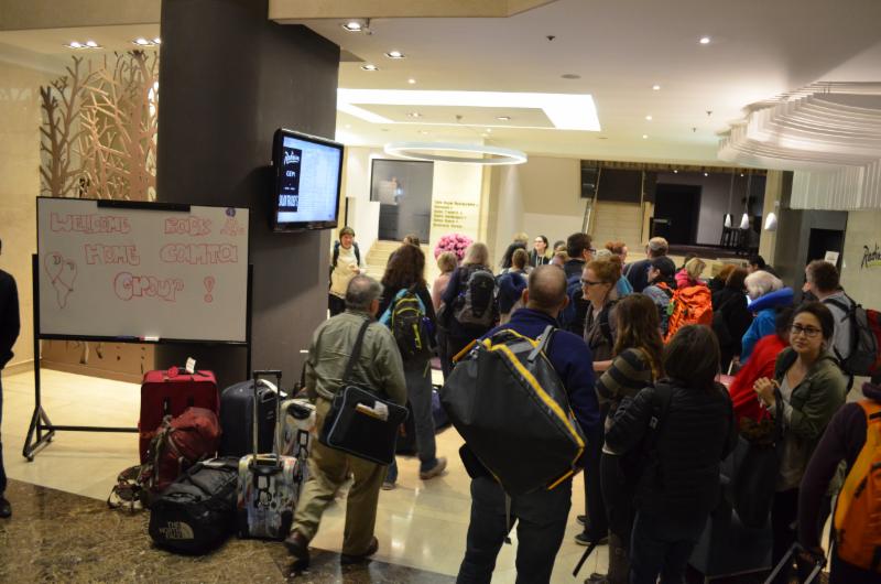 After almost 24 hours of travel the exhausted team arrives at the Radisson Hotel. Despite arriving just after 2 am we are greeted by a warm welcome from the hotel staff with some refreshments and snacks as the 50 Week One members begin to check in to their rooms.