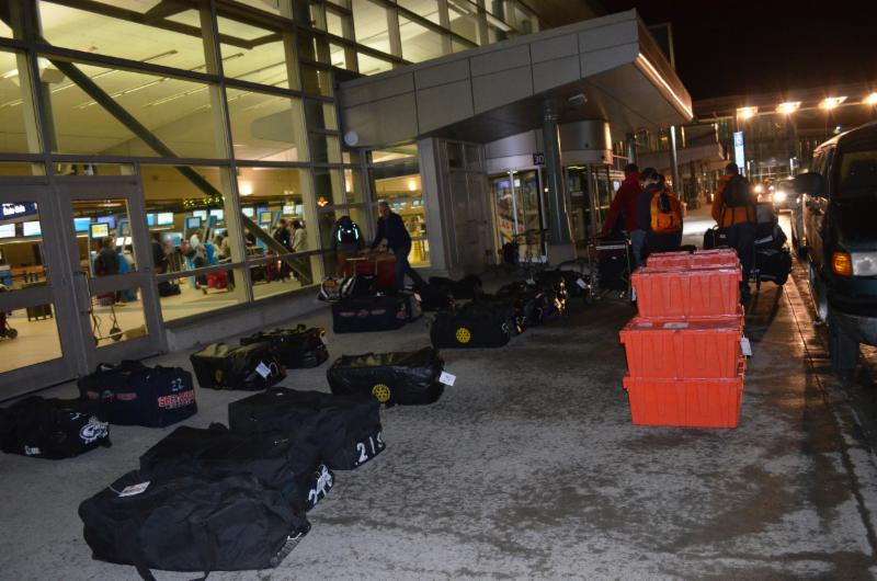 The 2015 CAMTA team assembles at the Edmonton International Airport in the early hours of February 20.