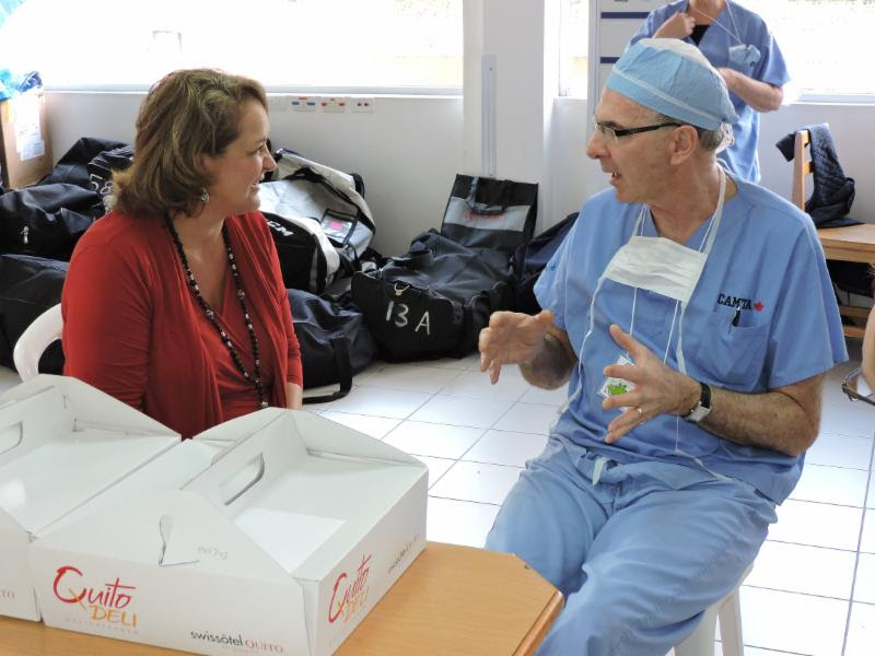 | Marianick and Dr. Moreau discuss the operation of CAMTA missions in Ecuador. |