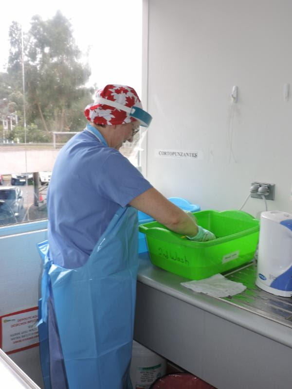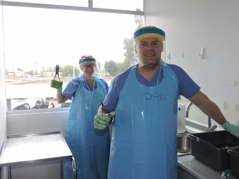 | Lay People Wendy Read and Dan Bruha cleaning surgical supplies. |