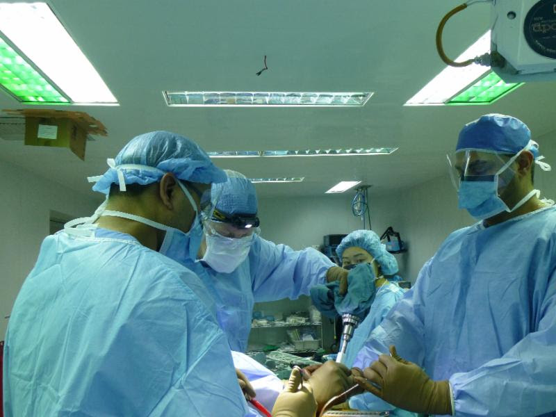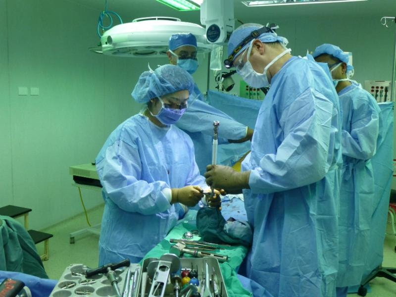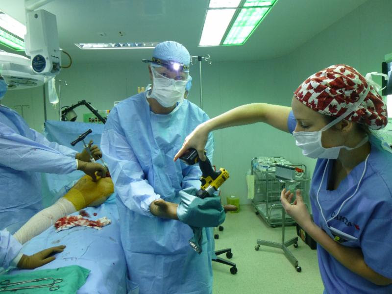 CAMTA surgeons test a “drill cover” which allows regular drills to be used in surgery. Arbutus Medical, makers of the cover, donated one to CAMTA. The covers can be sterilized and used up to 80 times. This cost saving innovation is particularly important in countries where medical budgets are extremely tight.
