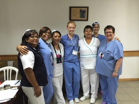 | Simone la Guerre, Bev Runka and Pauline Worsfold (Recovery Room Nurses) and Erica Nelson (Adult Ward Nurse) work alongside nurses from Hospital del Padre Carollo Un Canto a la Vida. |
