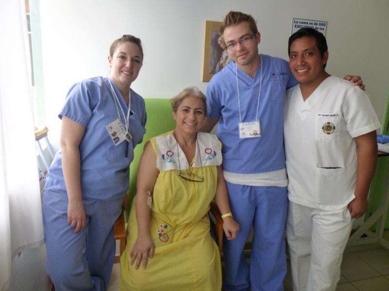 Relatnship building with Ecuadorian medical professionals occurs in all CAMTA teams. In the photo above, CAMTA's Lisa Bleakley (Adult Ward Nurse) and Adam Petriw (Translator) consult with Edison (nurse) to discuss different types of intravenous therapy. Also pictured is patient Maria who received two new hips on Tuesday and was discharged today.