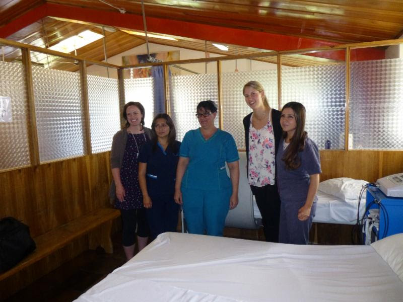 | Physiotherapists Kristen Redhead and Emily Coggles along with representatives from the Tierra Nueva rehabilitation centre. |