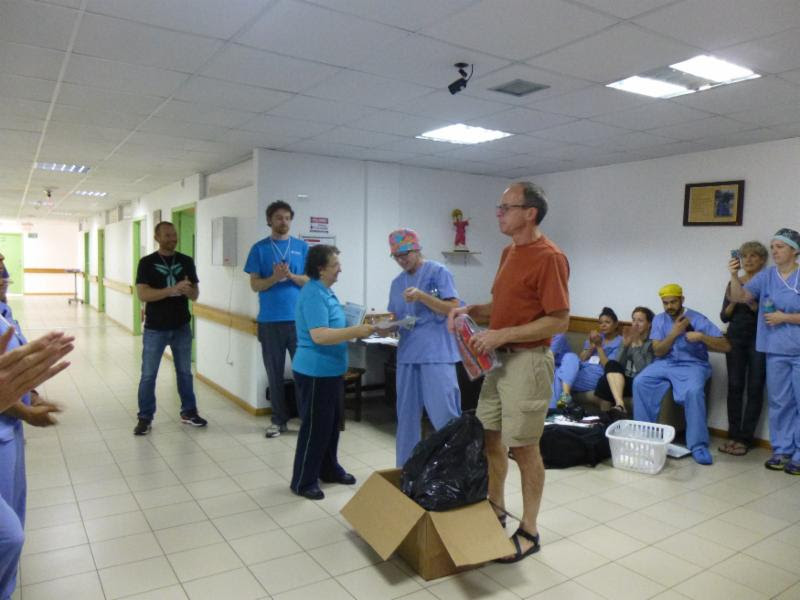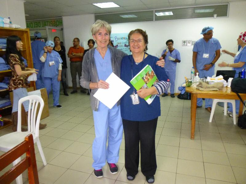 On behalf of Tierra Nueva, Patricia Jarrin presents each CAMTA team member with a gift and a Certificate of Recognition. Patricia is CAMTA's Brigade Leader and handles all critical arrangements related to CAMTA's use of operating rooms, wards, administration room and laundry etc.