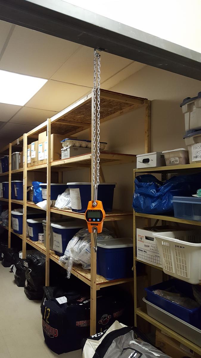 CAMTA has purchased a new scale for weighing hockey bags, now set up at our warehouse. This year we will be bringing 76 hockey bags full of equipment and supplies to Quito, and each bag must meet airline weight restrictions.