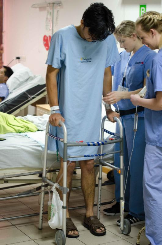 By the end of our day, Nelson had already seen physiotherapists who taught him how to get out of bed and stand up on… his brand new hip! He is staying with us until Saturday, because he needs IV antibiotics as a precaution against further infection.