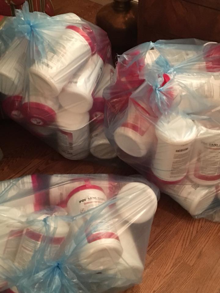 Every team member packs an empty Caviwipe container, which the Physios will use as a prop for exercises for our total hip replacement patients in Quito.