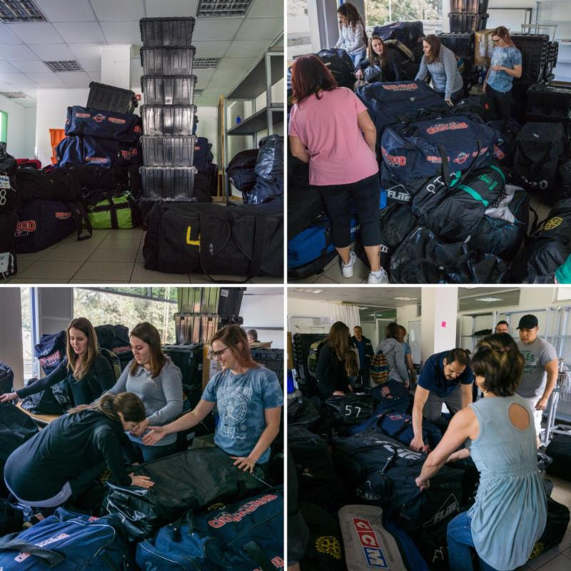 Each team member from CAMTA's home base of Edmonton, AB was tasked with bringing along a hockey bag, or tote box of supplies on their journey to Quito. This morning, the entire team unpacked a seemingly unsurmountable heap of bags and boxes containing medical supplies that are essential to our mission. Everyone pitched in, and, as the saying goes, many hands made light work!