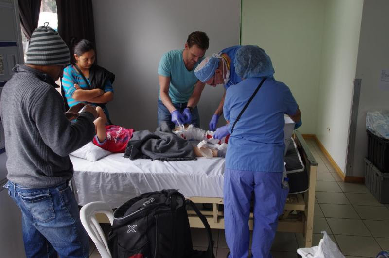 Jerico Lutuala, 11 years old, was born after suffering from Streeter's dysplasia also known as constriction band syndrome while in utero. Streeter's dysplasia can affect a fetus in a number of ways, but Jerico lost the toes on his left foot and a few fingers on his hand. He also suffers from insensate skin on his left foot so the doctors realigned the angle of his ankle and set it with a couple of pins in his tibia. This was done to help Jerico with mobility. Now a week post operation his swelling is reduced and Dr. Marc Moreau (pediatric orthopaedic surgeon) and Dr. Ryan Wright (family practice physician) removed his cast, gave him a check up and a new red cast.