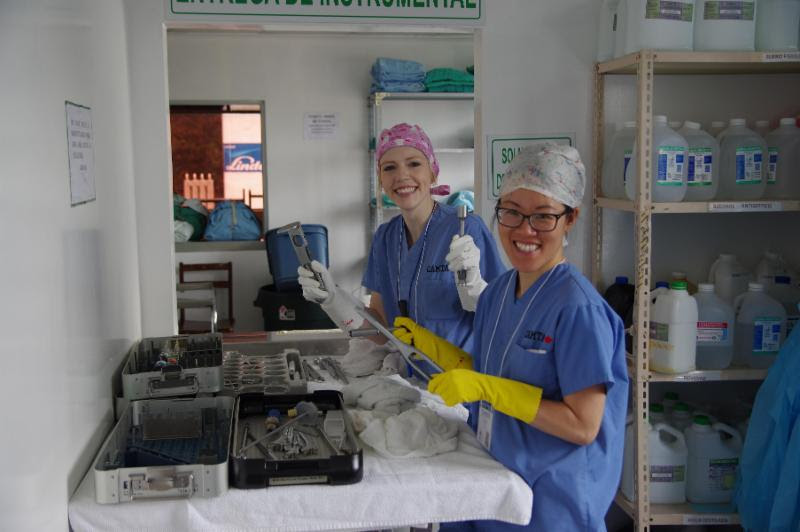 The instrument cleaning room is affectionately known as the kitchen. Having clean, sterile instruments is a must for surgical procedures and scrubbing the instruments is a laborious task. While it is hard, hot work getting the instruments clean and ready, the lay team always find a way to have a little bit of fun.