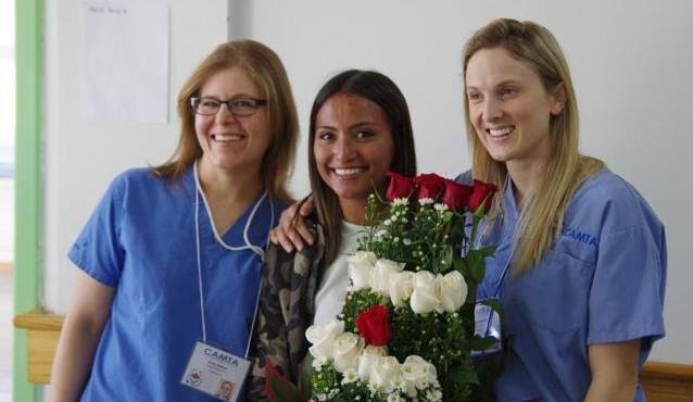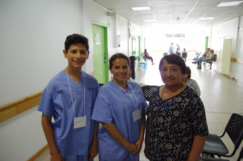 Carmen, Dustin and Jenny are all CAMTA alumni. Dustin had club foot surgery when he was about a year old, and now he and his twin brother Damon are volunteering as translators! Jenny had hip surgery 4 years ago and is also a volunteer translator. Carmen, who missed her one year follow up exam, came in today 16 years after receiving two new hips from CAMTA's initial Mission. Her mobility is still very good. Well enough that she recently spent time hiking on Cotopaxi. While she did not go to the summit, she has the picture at 4,864 metres to prove that she still has energy to spare.
