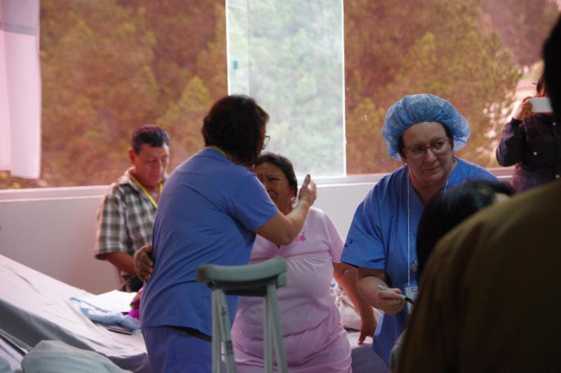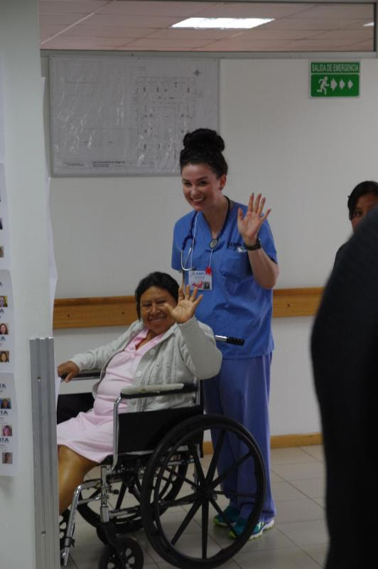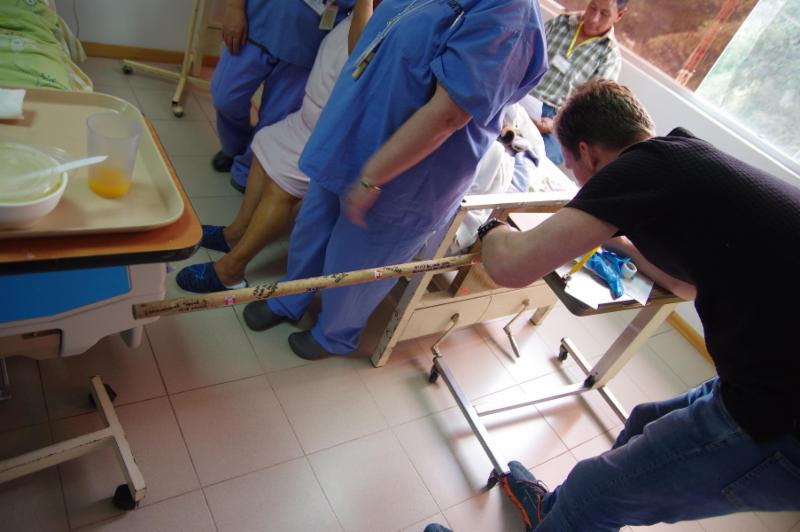 After her surgery Maria Rosa found out that she would be given a pair of crutches to assist with her recovery. Sussana Gaviria (Translator) talked with Maria Rosa and asked if she would throw out her walking stick now that she had a new hip. Maria Rosa replied that it had been her friend for many years, and although it was very plain, she would have to hold on to it. Sussana asked if Maria Rosa would like the doctors, nurses and other CAMTA members to sign the stick as a memento, but Maria Rosa didn't think that the team would have the time or interest to do that for her. Sussana gathered up the stick and passed it around until there was hardly anywhere left to sign. Some of the team also added small Canadian flag stickers to brighten it up.