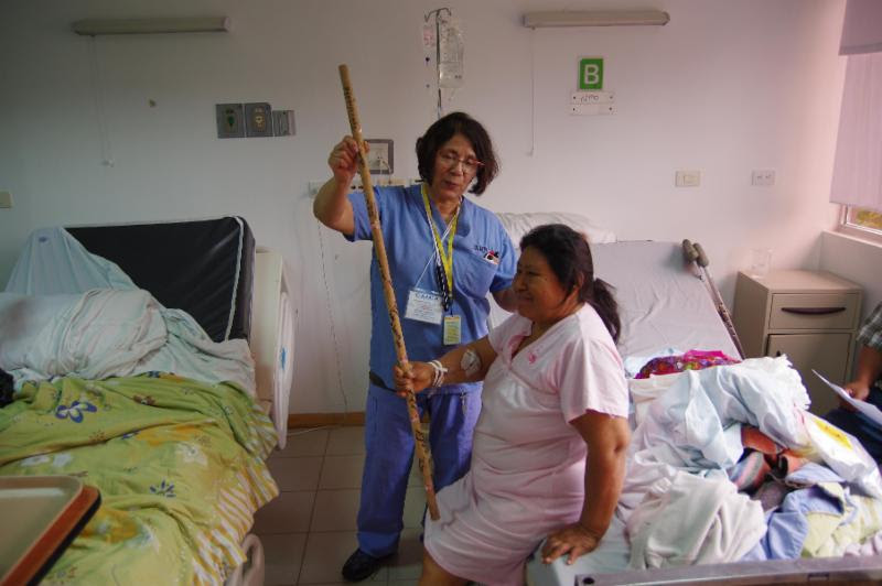 Maria Rosa Yanchapaxi came to the CAMTA clinic like many others, hoping for relief from a problematic and painful hip. Maria Rosa's walking stick set her apart from many others in the clinic. The stick (a very plain one) had been with her for many years. When she first arrived at the CAMTA clinic Maria Rosa did not want to sit in the lobby with other potential patients; she was self-conscious of her walking stick, compared to the fancier store bought canes, crutches and wheel chairs that others were using. Although she referred to her stick as her “Mi Amigo” she was aware it was not anything special.