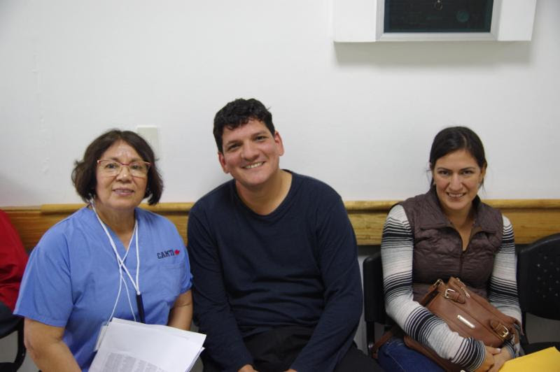 Sussana Gaviria (Translator), Frederico and his wife talk while waiting to be seen by the doctors at the CAMTA clinic.