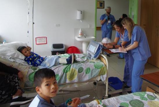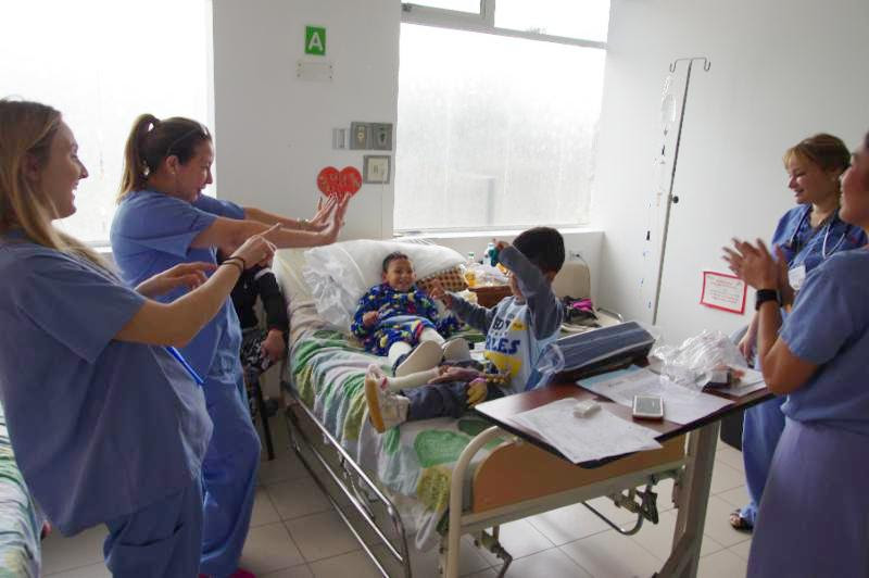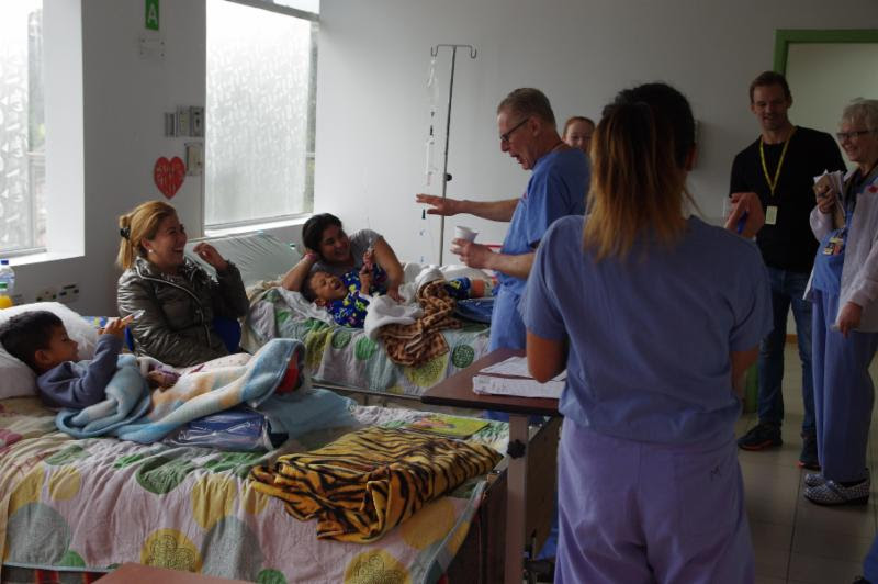 With help from the ward nurses, Christian Baez (6 years old) and Ivan Mendosa (7.5 years old), set up an ambush for Dr. Don Dick (Pediatric Orthopedic Surgeon. The boys both had surgery yesterday but were active and full of energy this morning. When Dr. Dick arrived to do rounds on the boys, they gave him both barrels from syringes they used as water pistols.