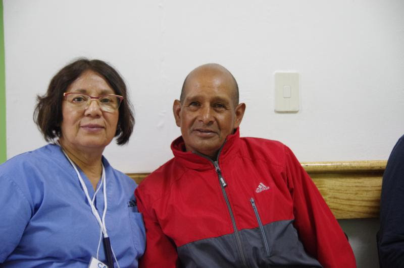 Sussana Gaviria (Translator) and Oscar Rodriguez chat prior to consulting the doctors on clinic day.