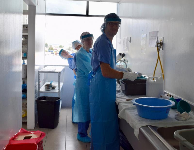 Once the OR is set up, there is still much to do to keep the surgeries running smoothly. One of the big jobs our Lay Team does is scrubbing instruments. It's hot, sweaty work standing for hours in a steamy room – but our Lay Team took this on with smiles on their faces and a wonderful sense of humor. Aren't they cute?