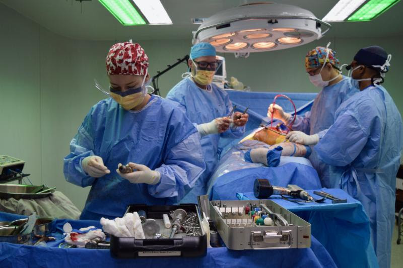 Rayanne Hillier (OR Nurse/OR Lead), Dr. Charlie Secretan (Adult Orthopedic Surgeon), Dr. Paulose Paul (Adult Orthopedic Surgeon) and Dr. Ivan Kamikovski (Orthopedic Resident) work in the adult OR.
