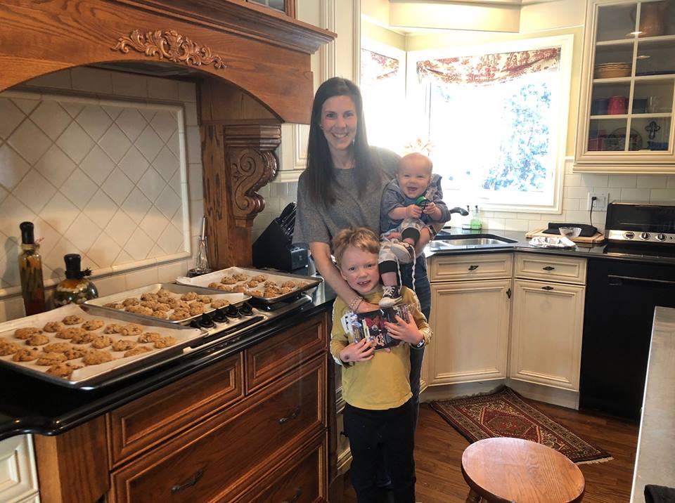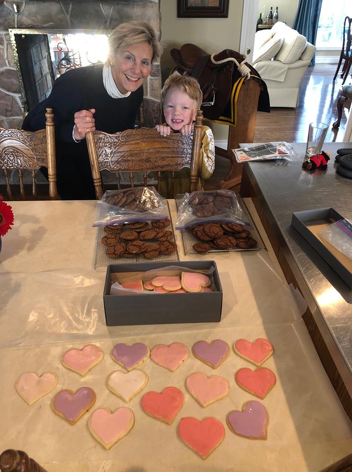 Barb's daughter, Colette and two of her kids, Jack and Wallace, and Barb's long-time friend Bonny Hodgson got together today to bake dozens of cookies for the Teams.