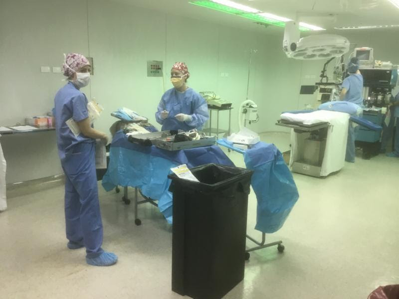 This transformation from empty room to functional OR was made possible by the hard working members of our Lay Team (Rachel, Bonnie, Yvonne, Amy, Natalie), with help from our OR nurses and nursing students – who spent the whole day in the wrapping room preparing instruments for sterilization. A wonderful local Ecuadorian nurse named Cathy even stayed all night to sterilize our equipment, without which none of today's surgeries would have been possible!