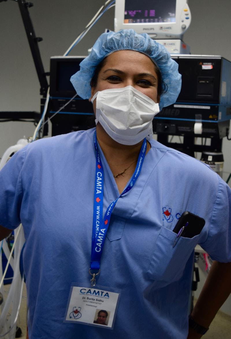 Successful surgery requires not only skilled surgeons, but also a team of hard working anesthesiologists on the other side of the drape managing sedation, controlling pain and frequently assessing vital signs. We are very lucky this week to have Dr. Surita Sidhu and Dr. Angela Neufeld taking care of our adult anesthesia and Dr. Indrani Lakheeram working with our pediatric patients.