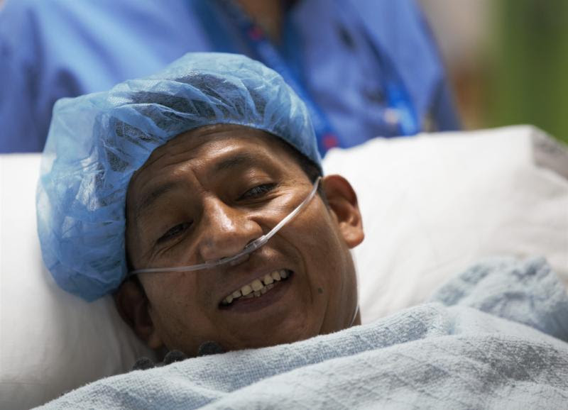Nester Eduard Cumbaja Cumbaja giving Rosa a smile after surgery