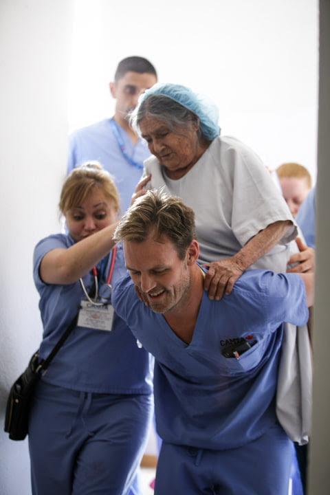 You may have seen the incredible effort of Dr. Ryan Wright on CBC News. He took his 87 year old patient to the operating room on his back when power failed. Debbie Mears thought his feet might be sore from his efforts the day before and treated him to a piggy back into the hotel!