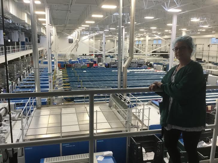 KOR Services Manager, Kathleen Nisbet, showed CAMTA Adult OR nurse, Kathy Bonitz the factory floor, where over 400 employees work to ensure clean linen for most of the lower Mainland hospitals.