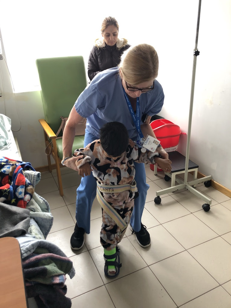 On the ward, patients are able to eat and drink again. The ward nurses carefully monitor intake to make sure the child doesn't vomit or have any adverse reactions. In addition, they administer pain medication to ensure that the child is comfortable when the anesthesia wears off. Family physicians also come by to physically assess the patients and keep their pain under control. Proper pain management ensures that the child can be mobile as soon as possible and begin physio and/or rehab.