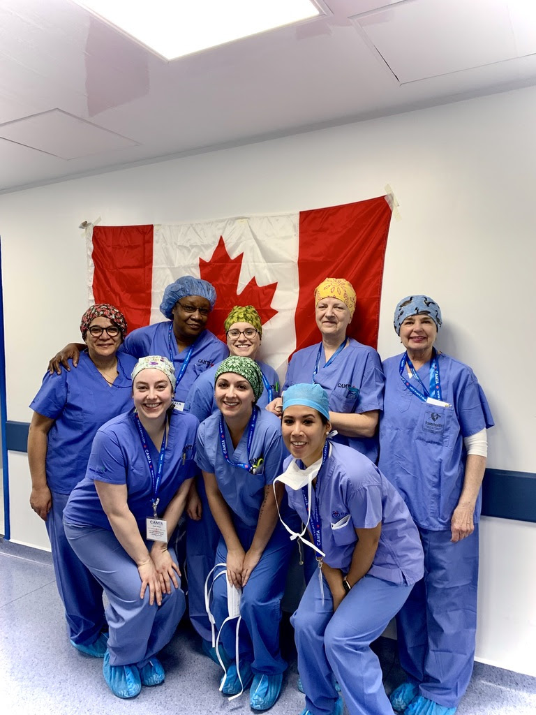 Our OR Team including nurses, techs and laypersons are ready to go! (Jaklin Sadeh, Odette Brown, Maria Seigrist, Kathy Bonitz, Aline Pourbaix, Pearl Kroon, Sarah Wladyka and Justine Tolentino.)