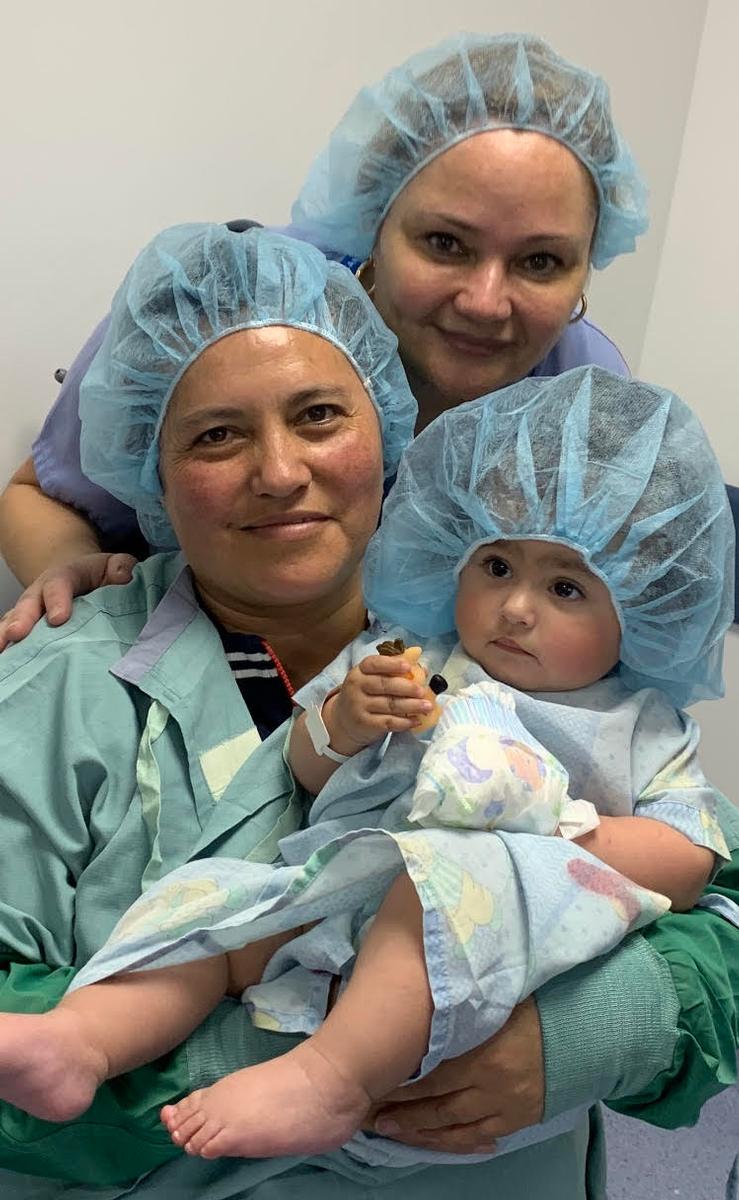 Mother Alba, Dr. Alex Gessner, Family Physician and baby Martina ready for surgery