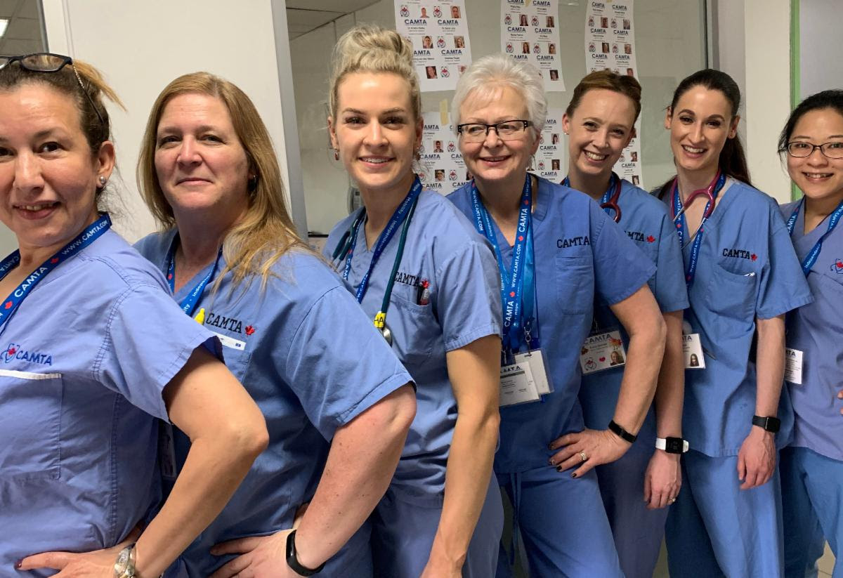 CAMTA Ward Nurses Adela Sandigo, Treena Erbach, Shannon Bakken, Deb Chalupa, Erica Graves, Mary Klute, and Shinner Hsu